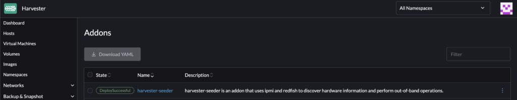 After a few moments, you’ll see the harvester-seeder addon deployed successfully.
