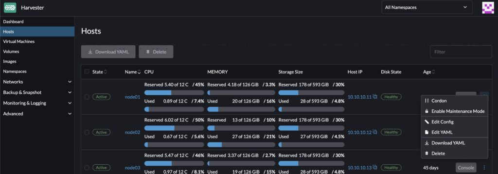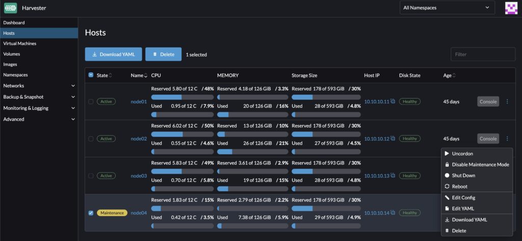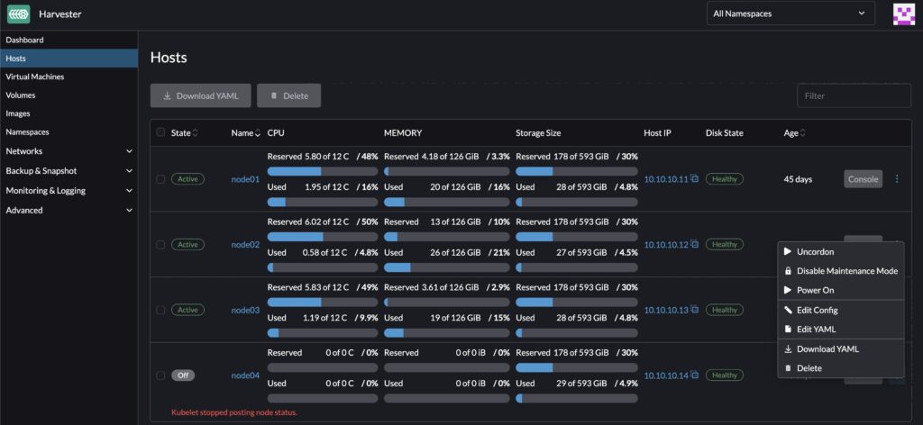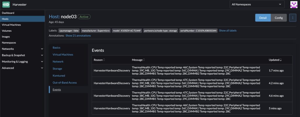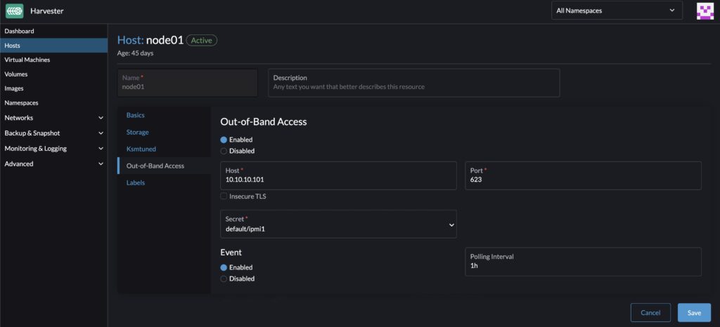 Configuring IPMI integration might not be everyone’s first priority, but it is pretty handy to have hardware information and power options in your Harvester UI. If you want to check out any of the other posts about my Harvester lab, check them out here.