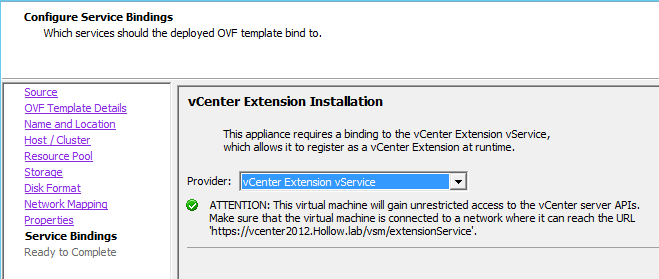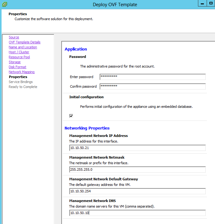 Deploy the OVF template to your desired ClusterHostnetwork and datastore.