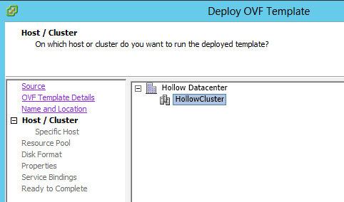 Choose a resource pool, or just the cluster name if no resource pools exist. The cluster itself, acts as a resource pool.