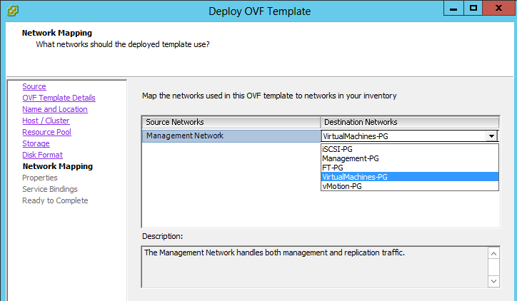 Select your virtual network. This might be a good time to review you networks again. It may make sense to create a different network strictly for your replication traffic.